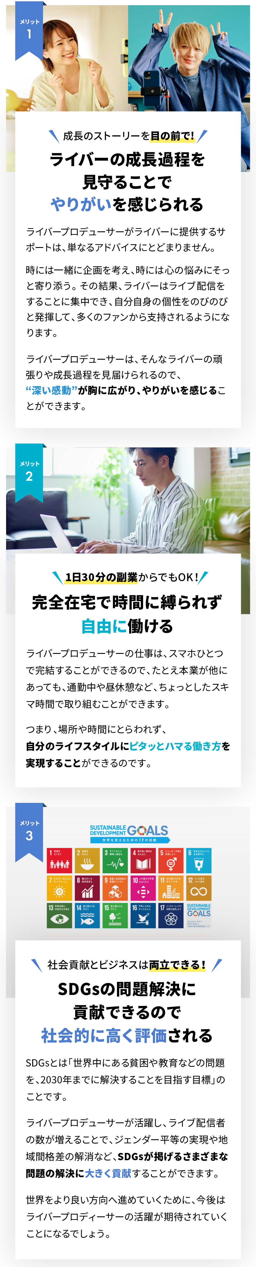 1日30分以上あれば取り組めます。ライバープロデューサーは、時間に縛られない職業なので、あなたのライフスタイルに合わせて働くことができます。
