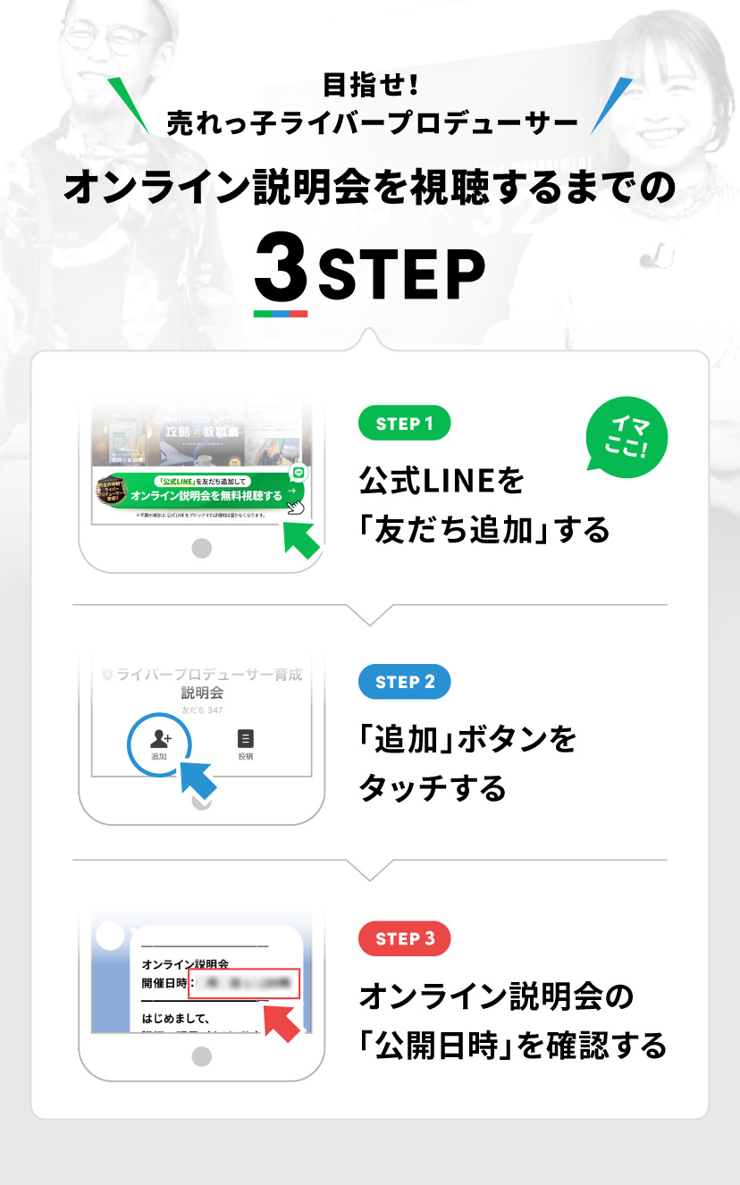 このページの下の緑色のボタンを押して、公式LINEを友だち追加していただければ、案内が届きますので、そちらから参加可能です。