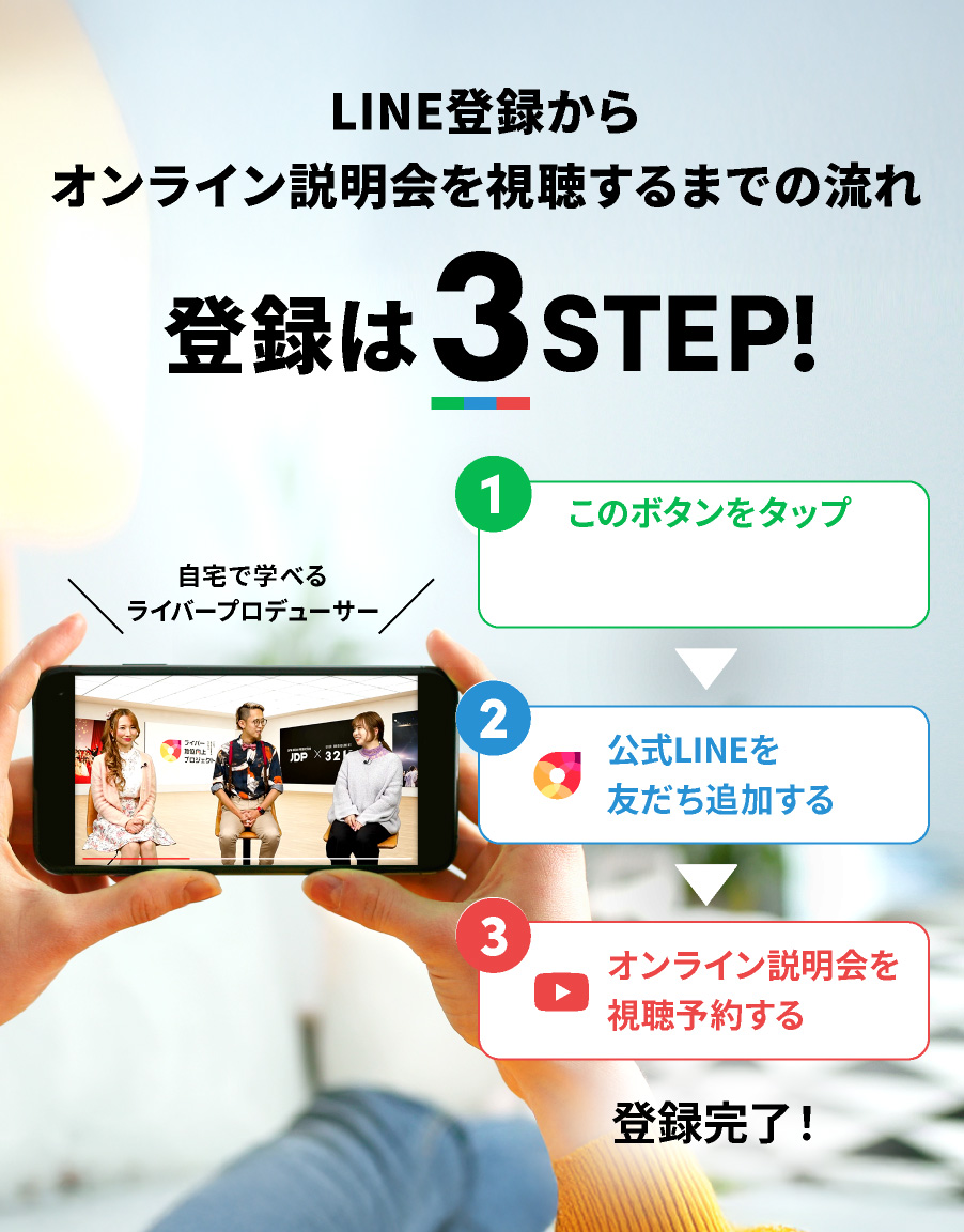 このページの下の緑色のボタンを押して、公式LINEを友だち追加していただければ、案内が届きますので、そちらから参加可能です。